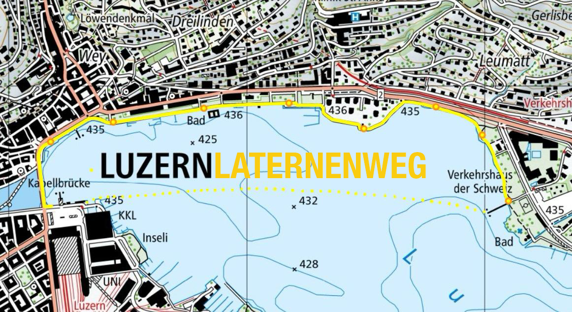 Laternenweg durchgehend vom Schwanenplatz bis Schiffstation Verkehrshaus-Lido